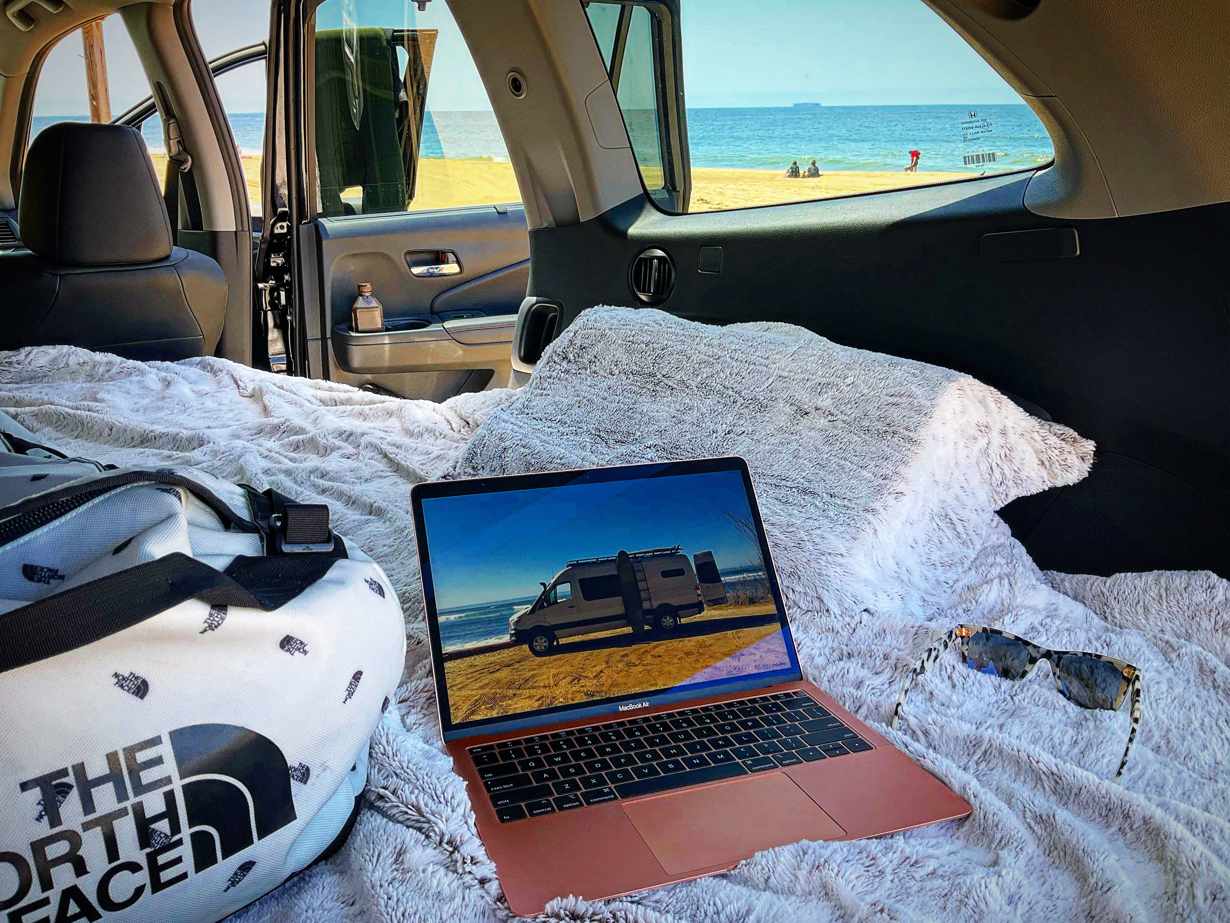 This is a well built, reliable, performance oriented vehicle. A custom air intake, and VTEC intake valves, make for an awesome intake growl. It’s been lightened so it’s faster on the street, but remains low-key… perfect for blending in. Sometimes pulling up in a 6-figure Mercedes, Porsche, or a large RV can rub people the wrong way, or bring too much attention. This stealthy camper slips by unnoticed and squeezes in anywhere. Parking in tight urban spaces, or at the beach, no longer causes anxiety.
